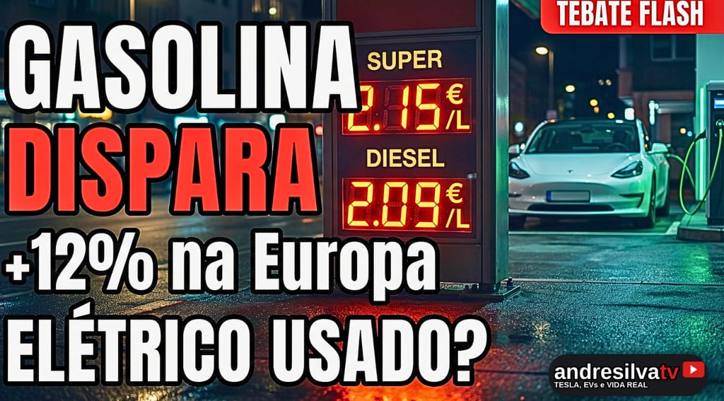 A gasolina subiu 12% na Europa e a procura por elétricos usados disparou. Portugal +54%, Alemanha 3x mais pesquisas, França quase duplicou vendas. Dados reais da Reuters com análise de mecânico.