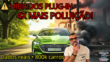 Análise técnica completa sobre híbridos plug-in baseada em estudo com 800.000 veículos. Emissões reais: 139g CO₂/km vs 28g prometidos. Dados verificados, fontes credíveis, experiência de oficina.