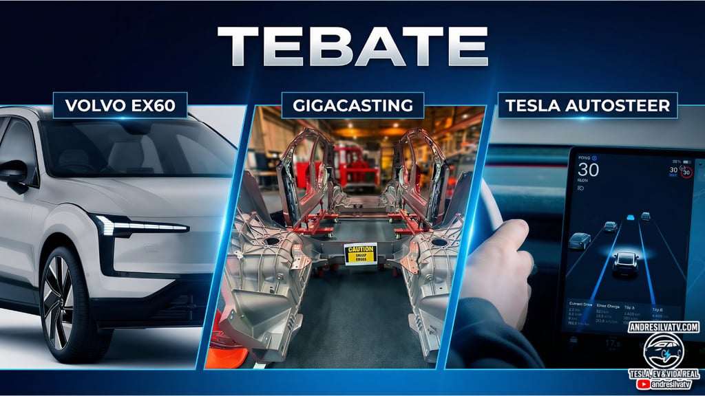 Análise técnica das 3 notícias da semana: Volvo EX60 cell-to-body, o debate do gigacasting e a Tesla a remover o Autosteer do pacote base.